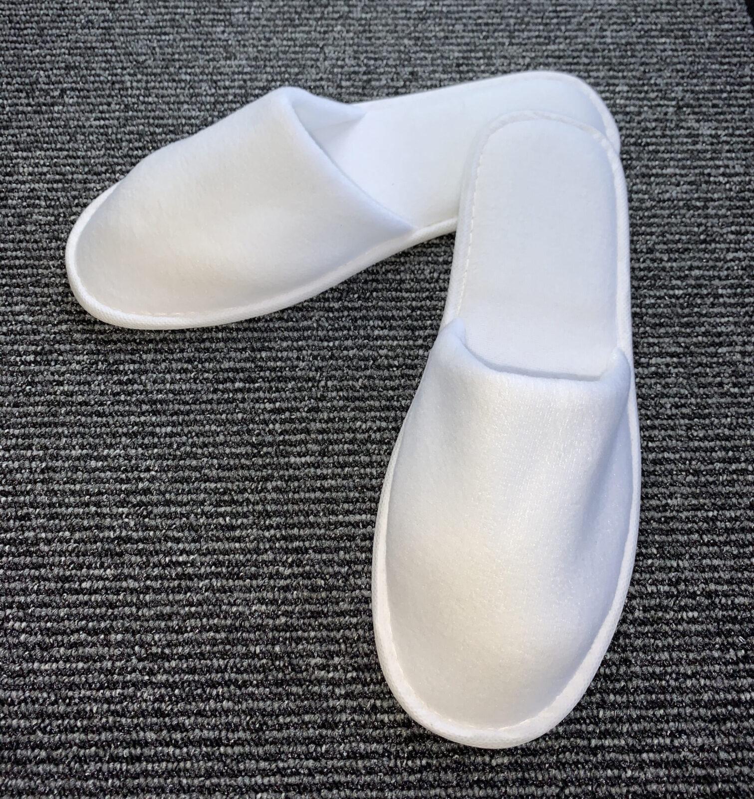 Guest & Co. work with the best slipper manufacturers in the world, to offer you a highly comprehensive range from economy, through to luxury footwear, and including environmentally friendly options, as well as a full bespoke print service to allow you to fully customise your footwear. Economy Poly Velour, Closed Toe, Foam Padded Upper Heel, Non slip dot sole. Unless you request otherwise, our stock lines of footwear are at 30cm length. Other sizes are available as a special order. For custom printed / embroidered footwear, we assist you with the process by creating a design for your approval, requiring a minimum order of 5,000 pairs.